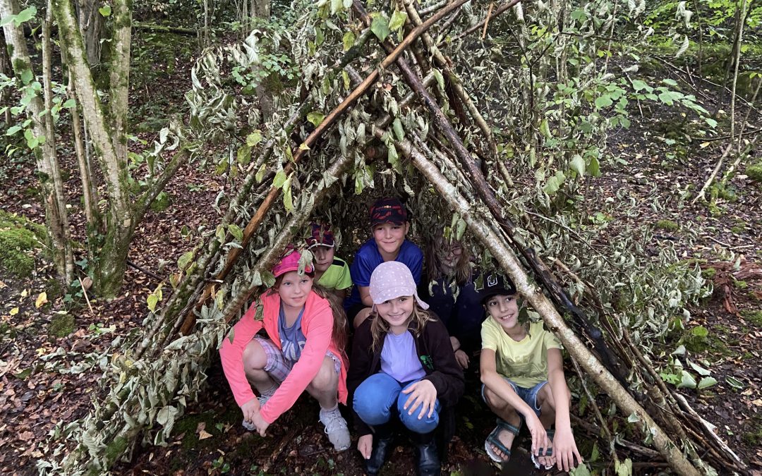 Ein Highlight war natürlich der Bau einer Waldhütte. Mit Feuereifer wurden große Äste gesammelt und zusammengestellt. Stolz wurde das Werk begutachtet. Ja, darin konnte sich dann jeder als Waldkönig fühlen.